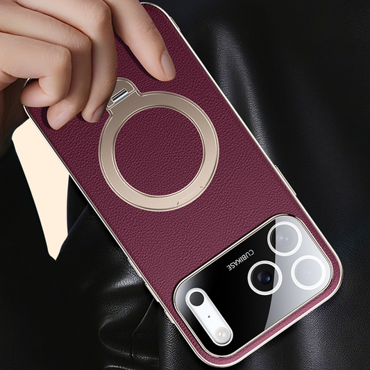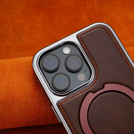AurumLuxe Leather Kickstand Case – Premium Texture & MagSafe Support