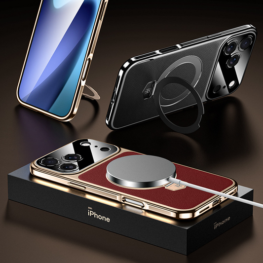 AurumLuxe ProLeather Case – Timeless Texture, Kickstand & MagSafe Support